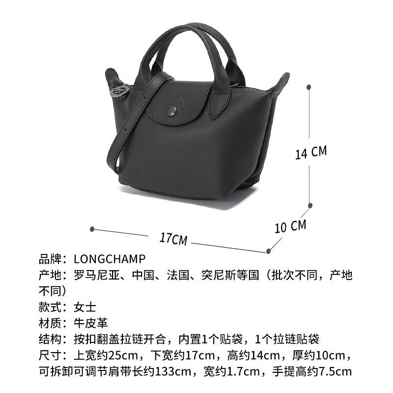 - 这款小巧玲珑的包袋是longchamp手提包袋的迷你款,迷人的皮革与全新的设计细节相得益彰,诠释摩登自信姿态搭配可调节、可拆卸肩带,手拿或肩背皆可。