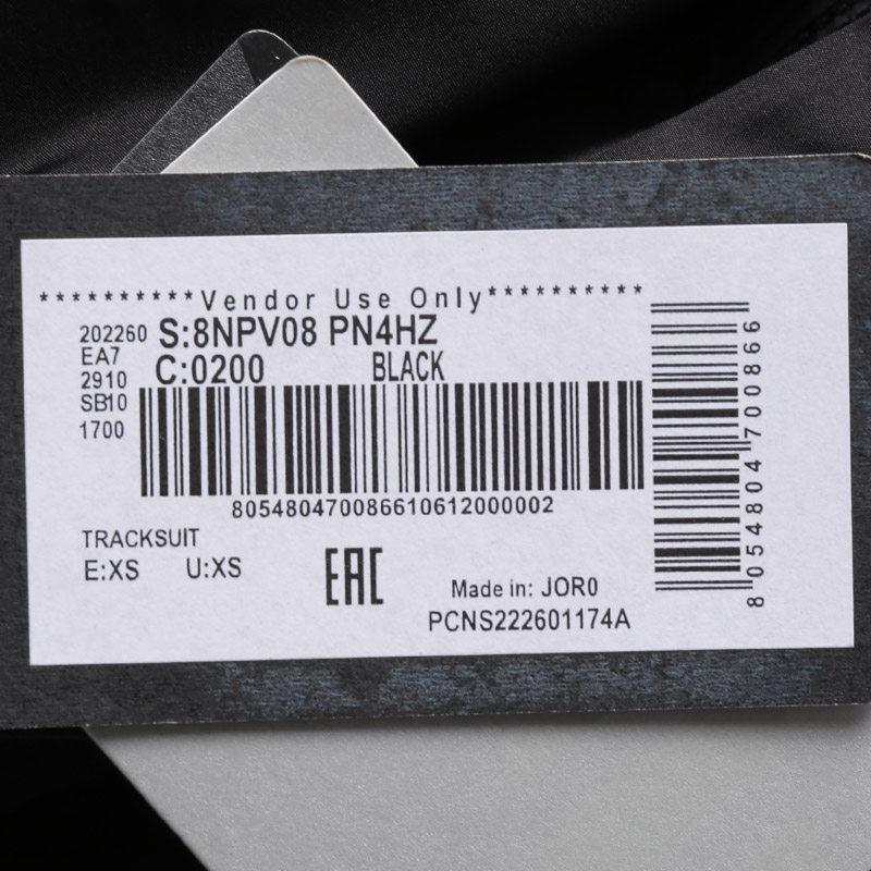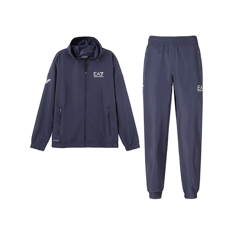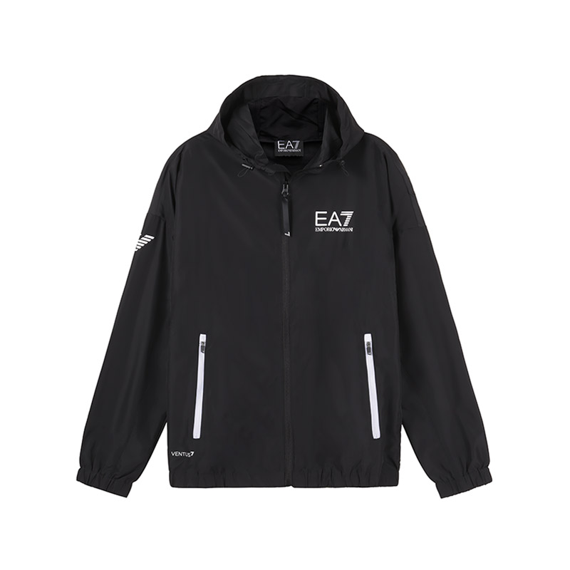 自营EA7 阿玛尼 【新品】男士VENTUS7黑色白色LOGO图案轻薄款连帽拉链卫衣运动衫运动裤卫裤套装 8NPV08 PN4HZ 0200