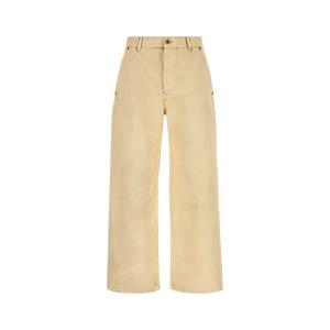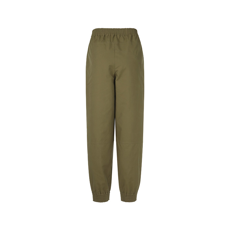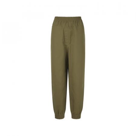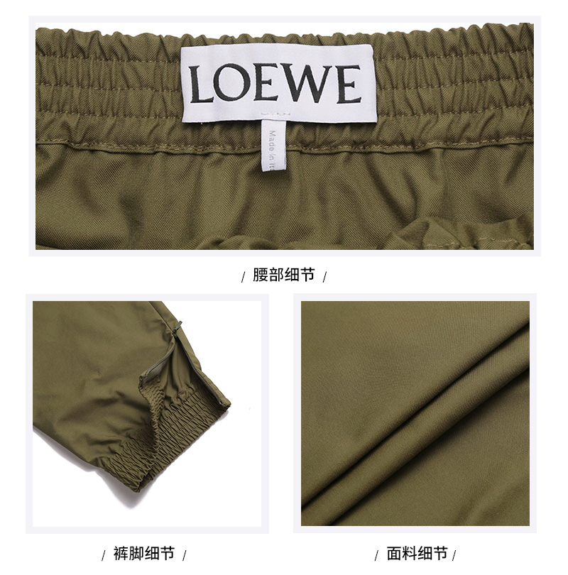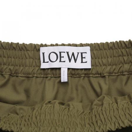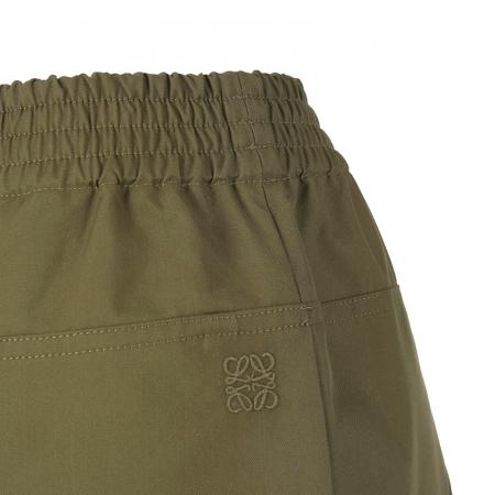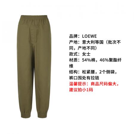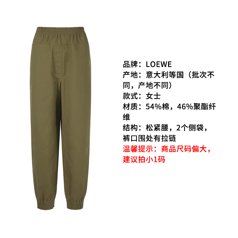 自营Loewe 罗意威 女士卡其绿色宽松版中腰华达呢松紧长裤 S540Y04XE1 6975