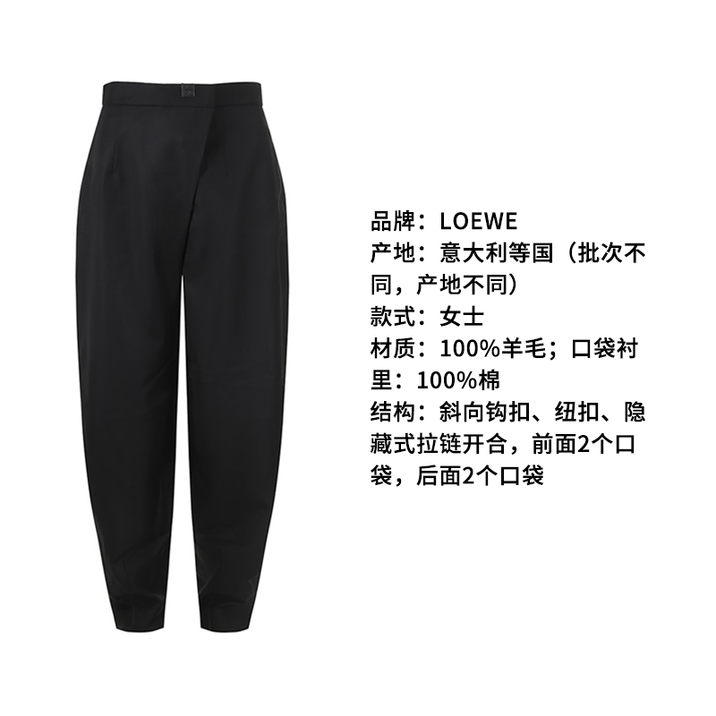自营Loewe 罗意威 女士黑色高腰锥形气球裤休闲裤长裤 S540Y04XE3 1100
