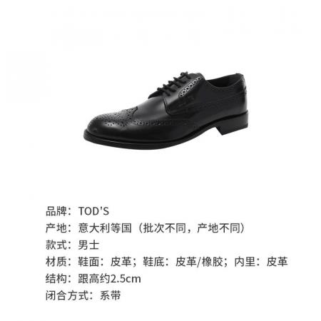 自营Tod'S 托德斯 男士皮革黑色系带巴洛克风格德比鞋单鞋皮鞋 XXM01E0O530MG2B999