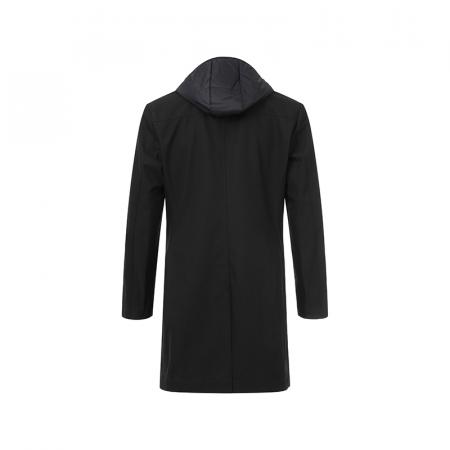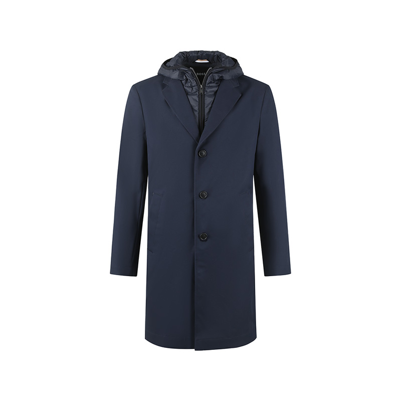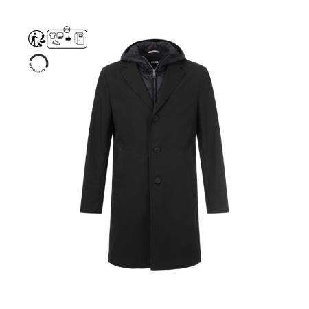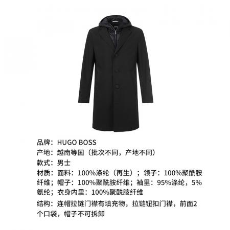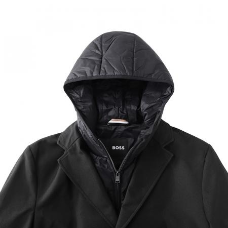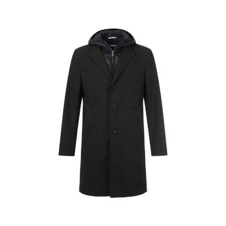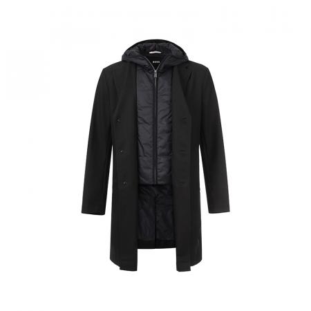 自营Hugo Boss 雨果博斯 男士Black系列黑色中长款连帽假两件风衣外套 50496157 001