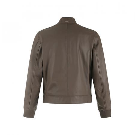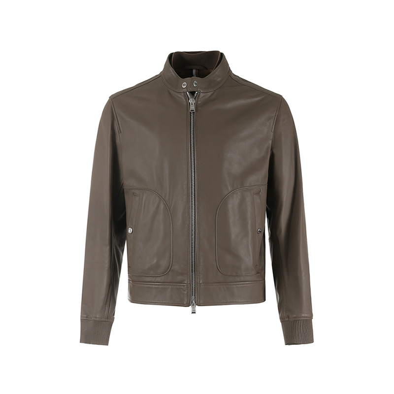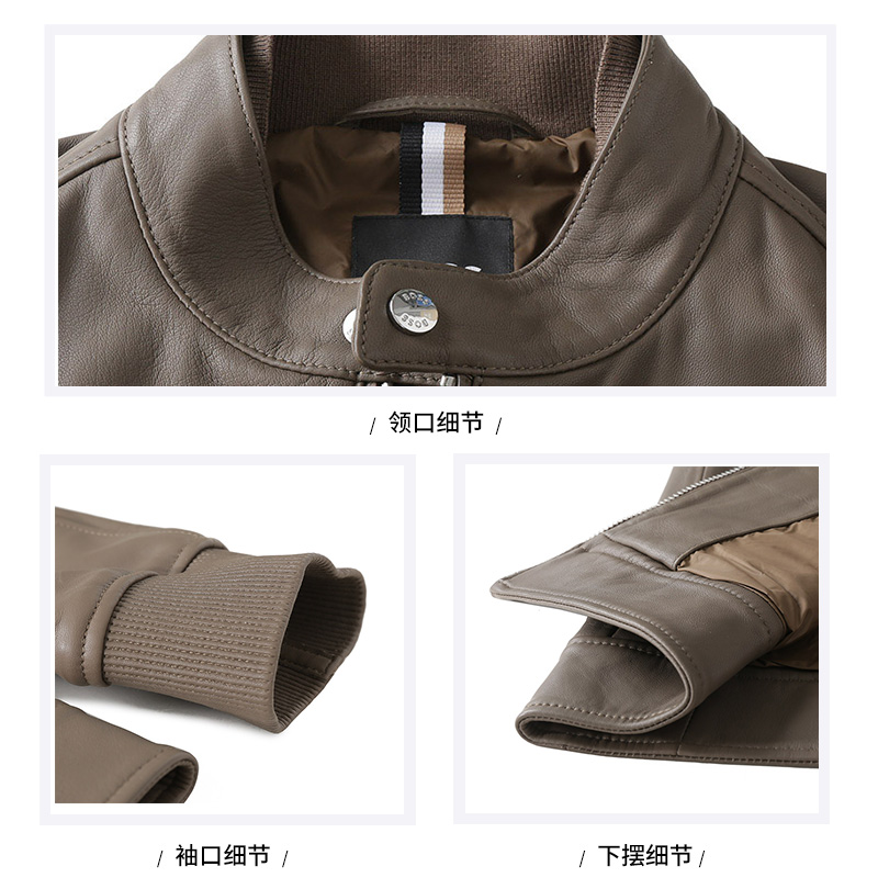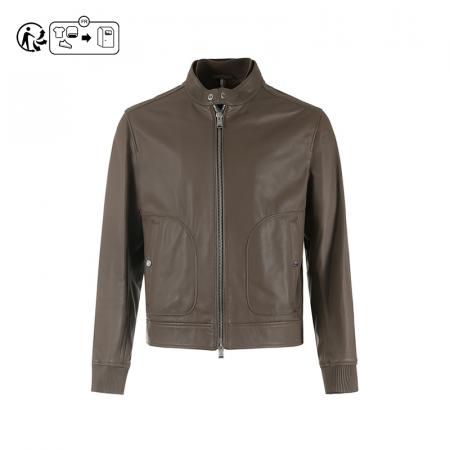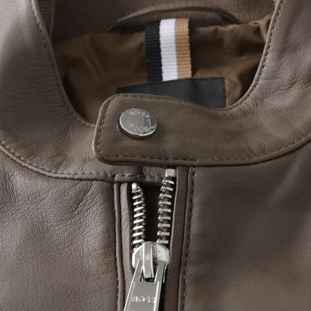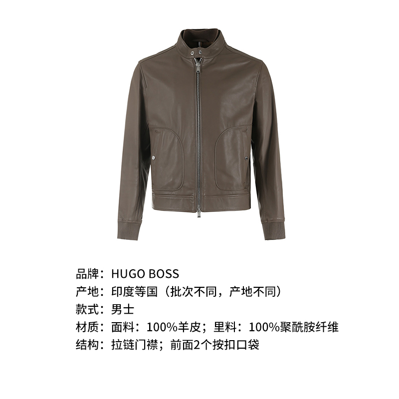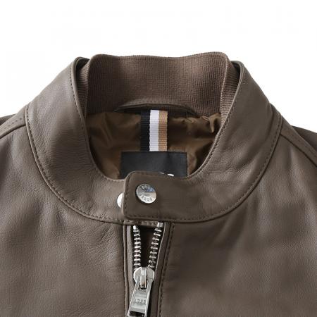 自营Hugo Boss 雨果博斯 男士black系列羊皮绿棕色立领哑光皮衣皮夹克上衣外套 50494120 361