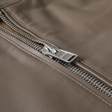 - BOSS Menswear 常规版型夹克,精选柔软羔羊皮制成,搭配哑光饰面和带品牌标识的装饰。