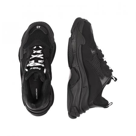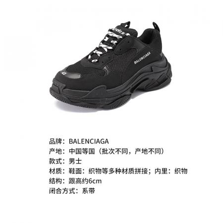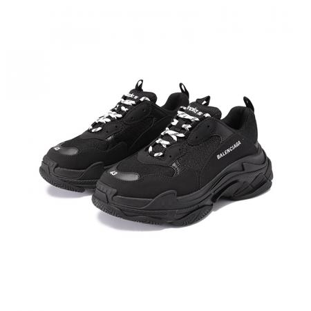 自营Balenciaga 巴黎世家 男士TRIPLE S系列黑色厚底老爹鞋系带休闲运动鞋 534217 W2CA1 1000