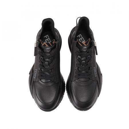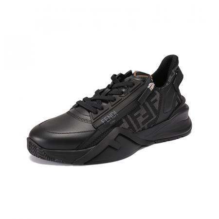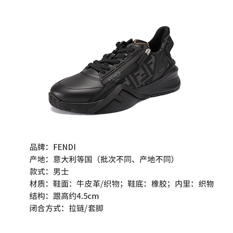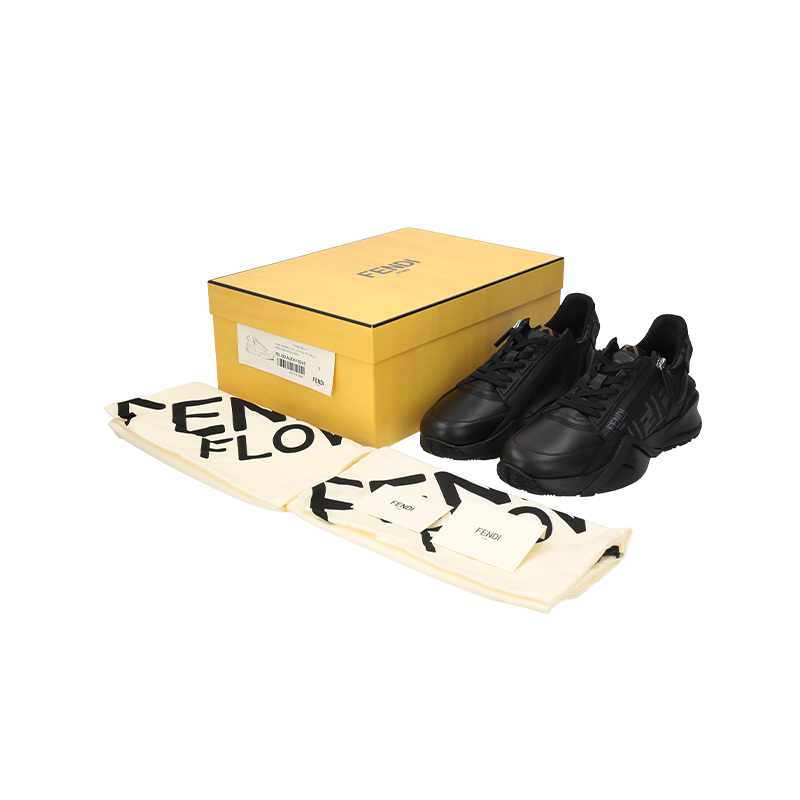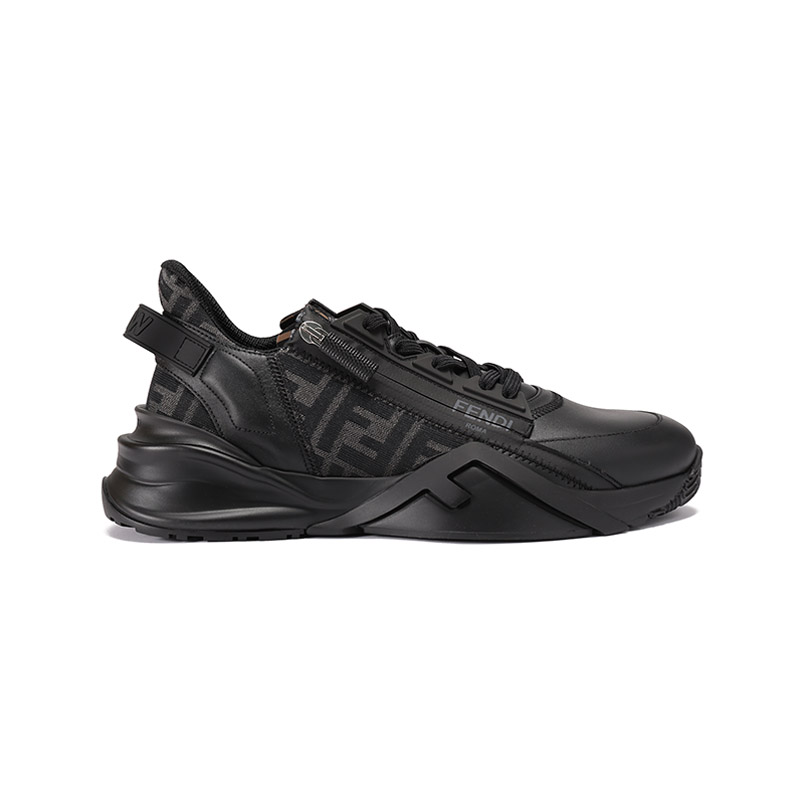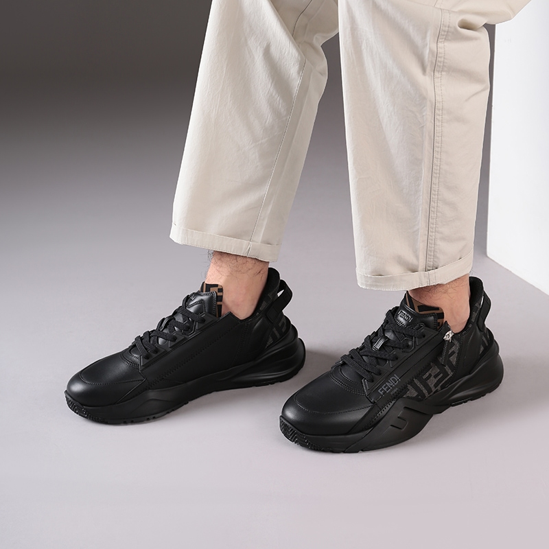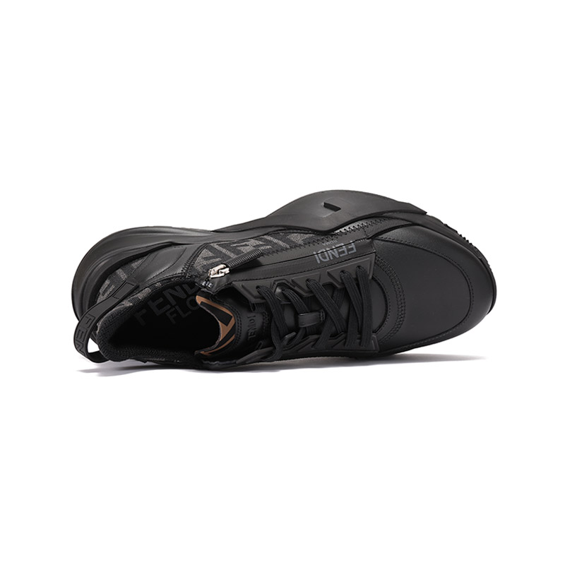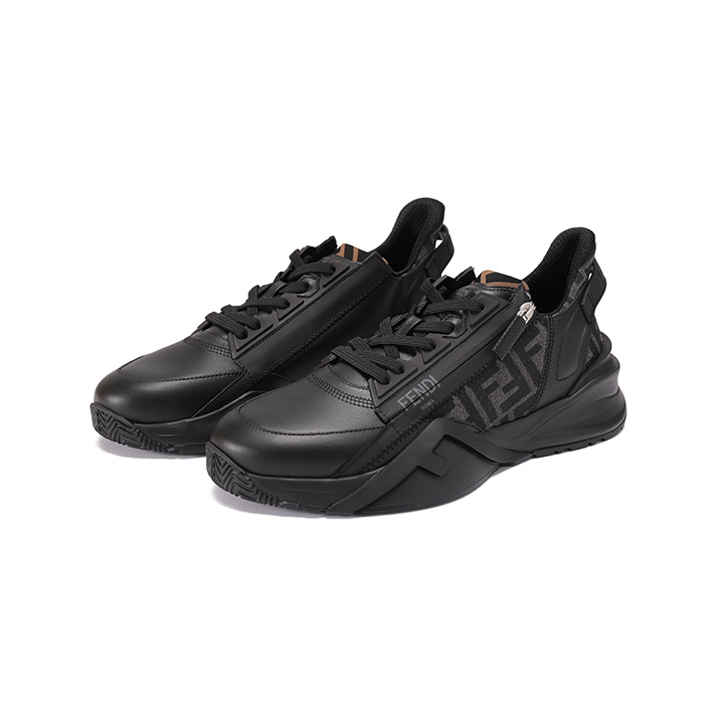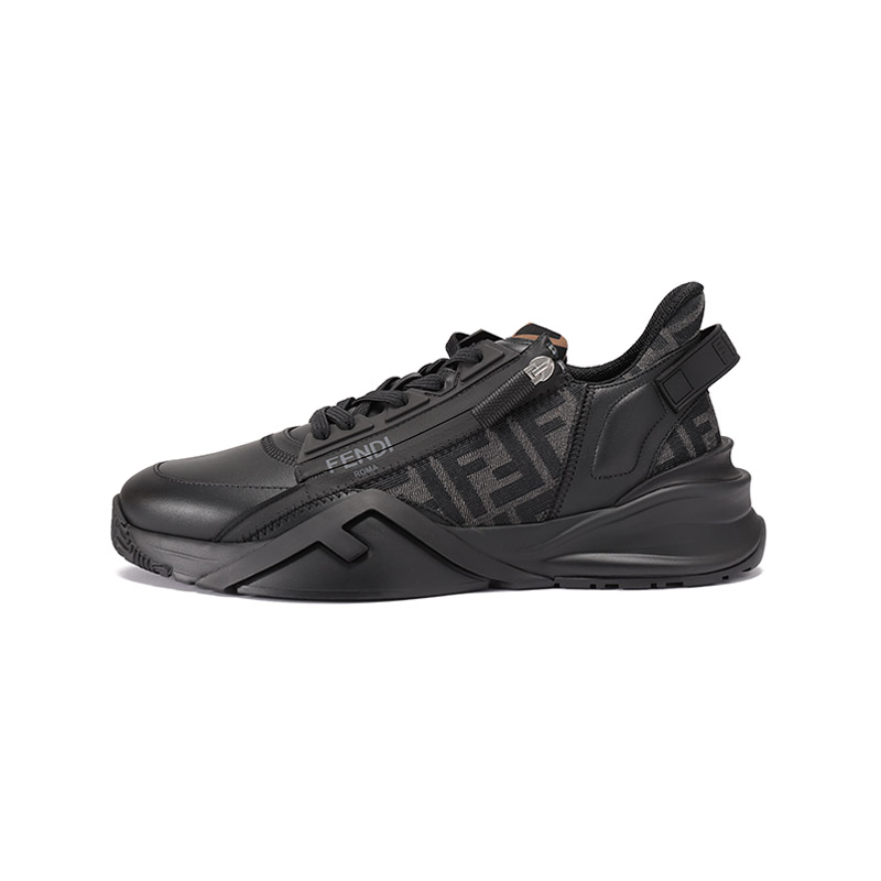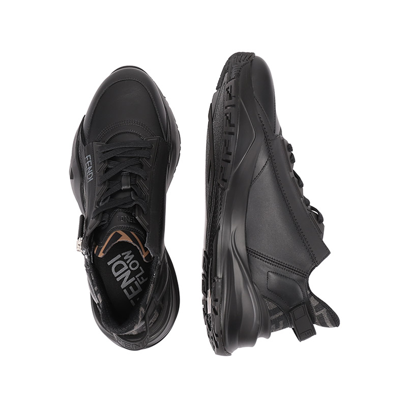 自营Fendi 【新品】芬迪 男士牛皮革/织物黑色多色FF提花FLOW厚底休闲运动鞋 7E1392 AJZH F1DV5