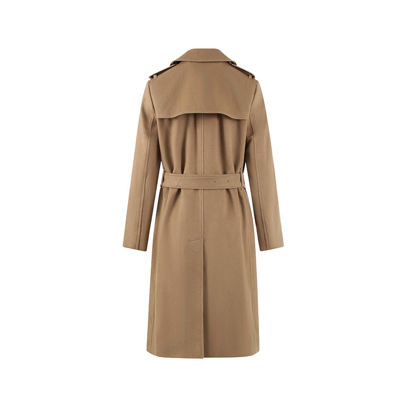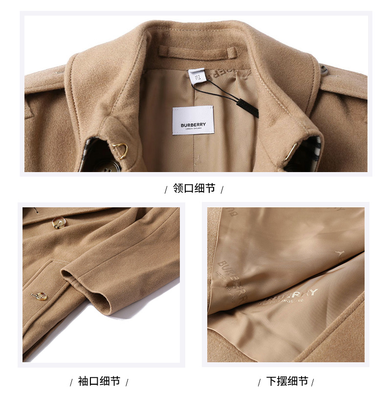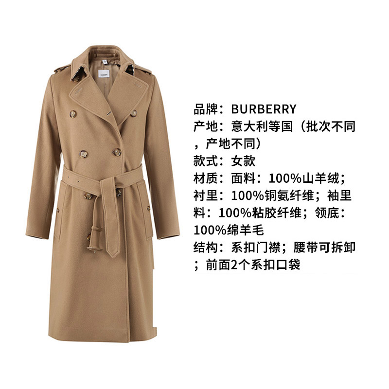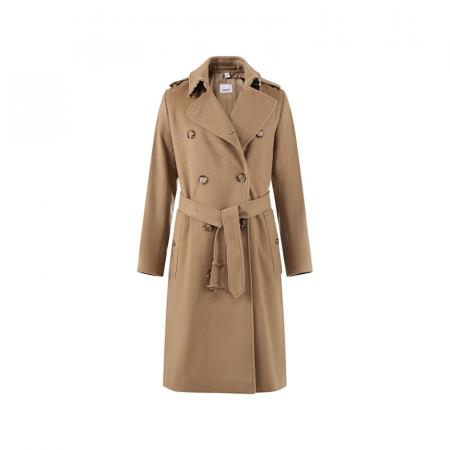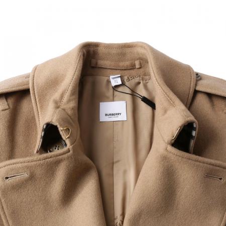 自营Burberry 博柏利 女款山羊绒大衣驼麻灰色肯辛顿版型Trench长款大衣外套 80581951