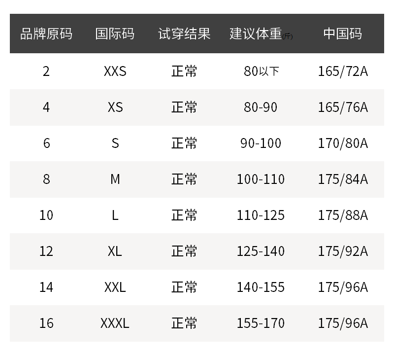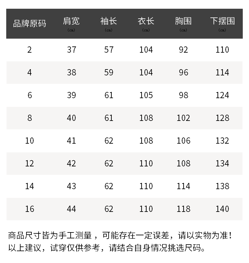 - 尺码说明