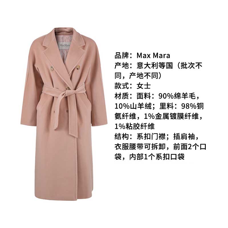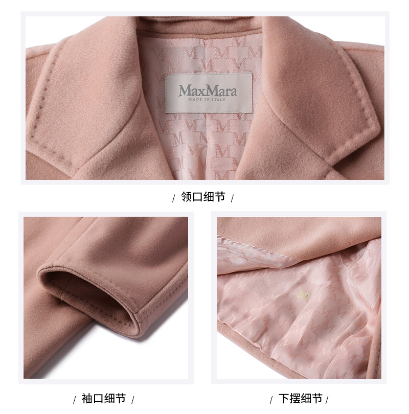 自营Max Mara 麦丝玛拉 女士绵羊毛肉粉色101801长款大衣外套 10180139 MADAME 026