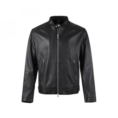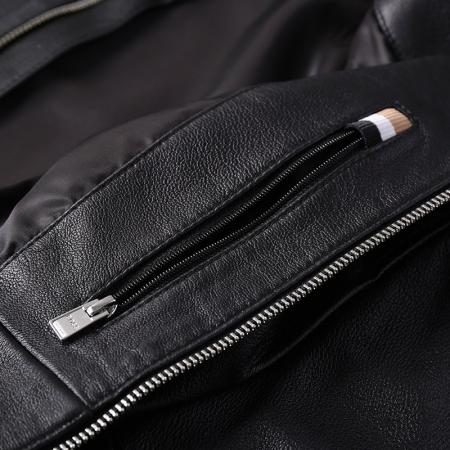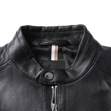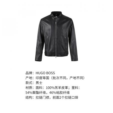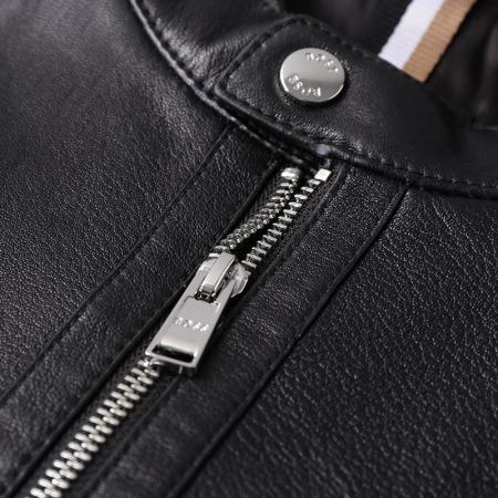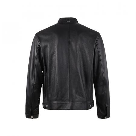 自营Hugo Boss 雨果博斯 男士Black系列黑色立领夹克皮衣上衣外套 50493935 001