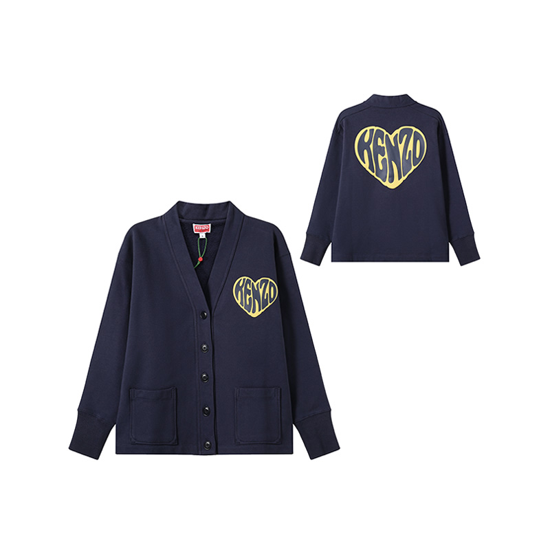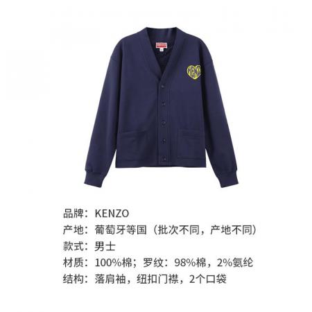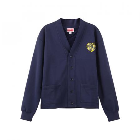 自营Kenzo 高田贤三 男士棉质午夜蓝色HEARTS爱心胶印V领卫衣开衫外套 FD6 5SW082 4MF 77