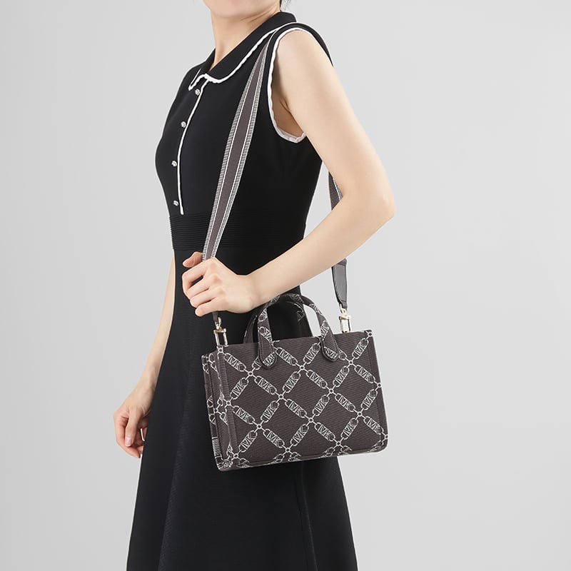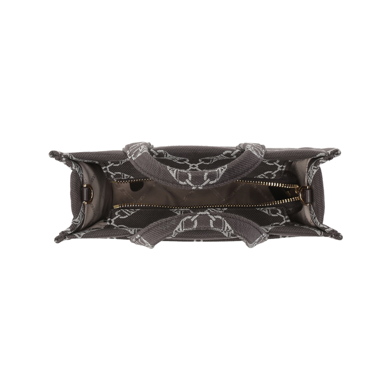 - 此款 Gigi 小号提花托特包,别具匠心地采用本季全新提花工艺打造简约挺括包型。将菱形花纹织于布料中,用深灰色调的经纱和纬纱相互交错搭织、交织沉浮,从而形成双色图案,拥有着低调的高级感。提花的工艺精美,彰显产品质感。包内空间充裕,可以轻松容纳您的文件、ipad等随身物品,有颜又有料。单品设有手提柄和可调节长肩带,满足不同场合需求。