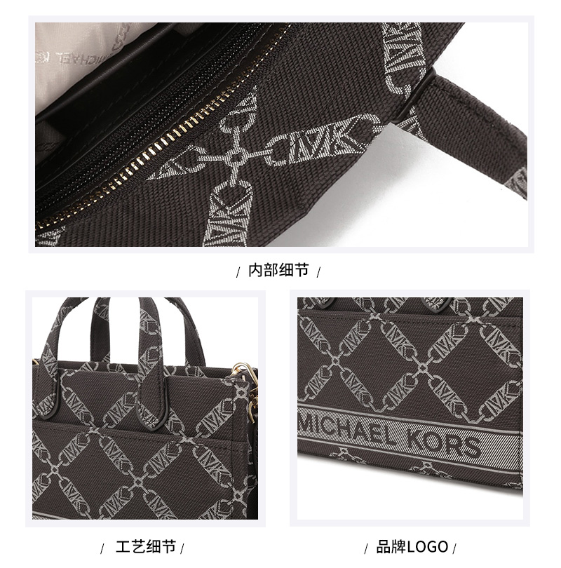 自营Michael Kors 迈克·科尔斯 女包 女士GIGI系列织物巧克力色菱形格链提花小号托特包手提单肩斜挎包 30F3G3GC7J CHOC MULTI