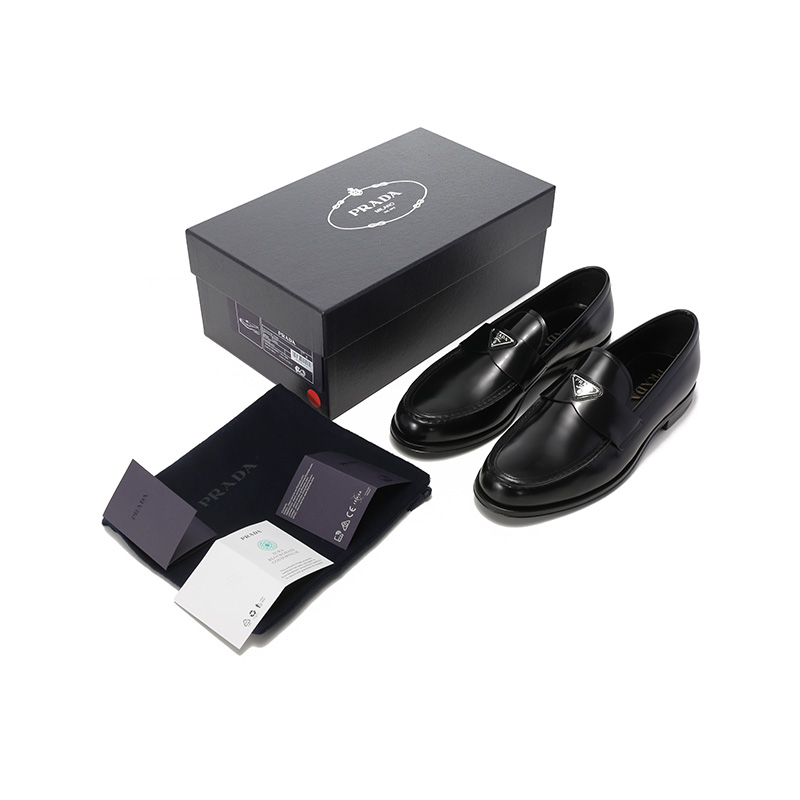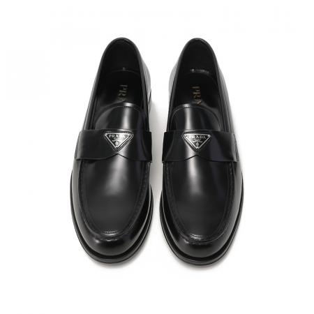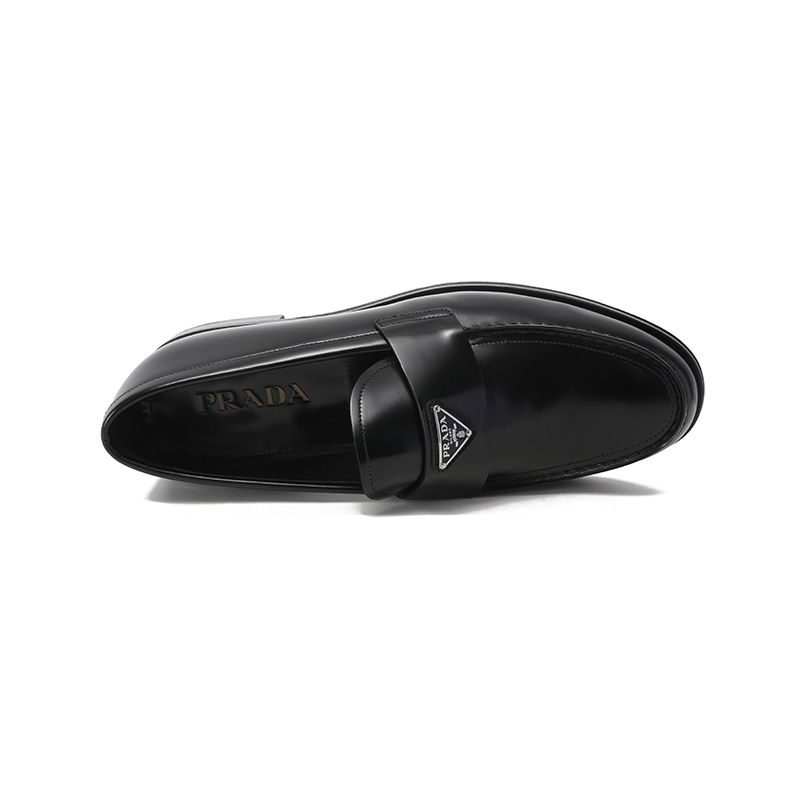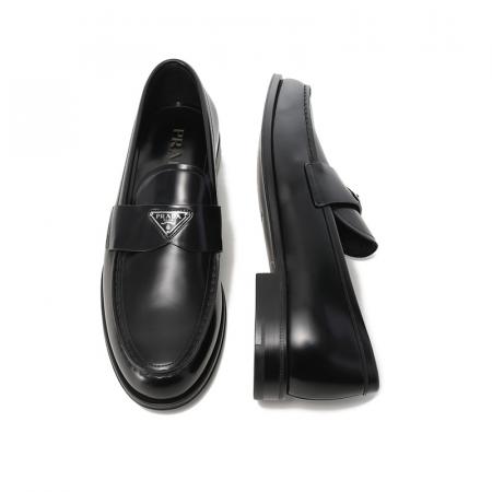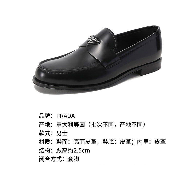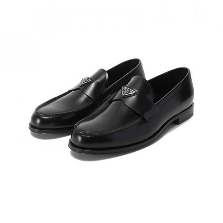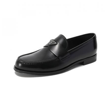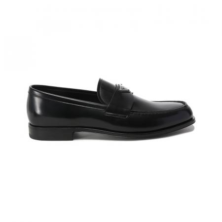 自营Prada 【新品】普拉达 男士亮面皮革黑色三角形徽标乐福鞋皮鞋单鞋 2DB205 055 F0002 F C000