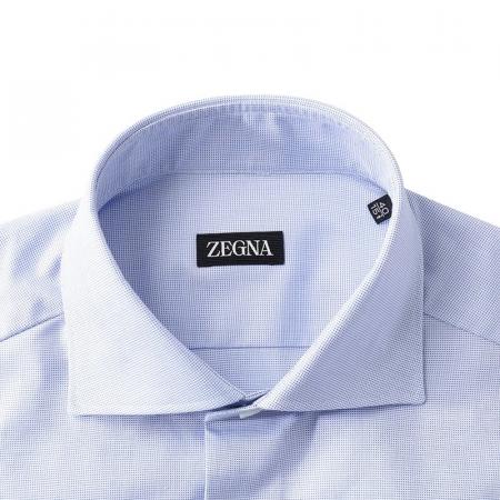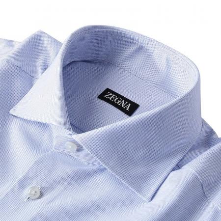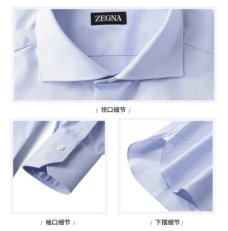 自营ZEGNA 杰尼亚 男士蓝白小格纹商务正装长袖衬衫 601622A6 9MS0BA
