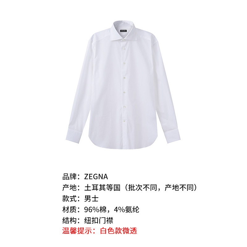 自营ZEGNA 杰尼亚 男士白色商务正装长袖衬衫 604100A6 9MS0BA