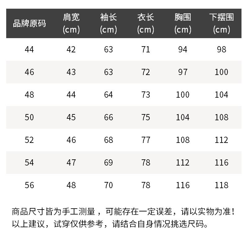 - 洗涤说明:不可水洗;不可漂白;不可翻转干燥;熨斗底板温度不得高于110℃;缓和干洗