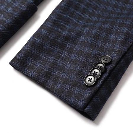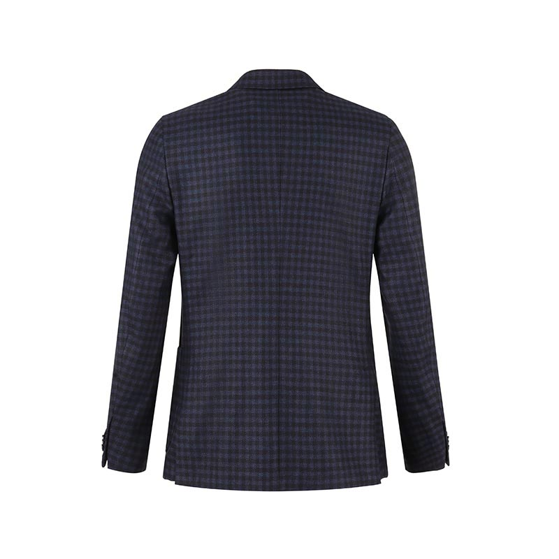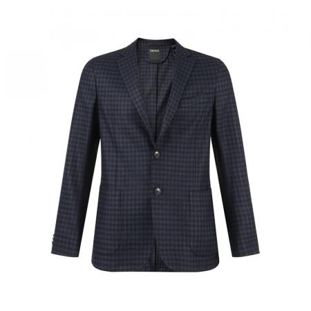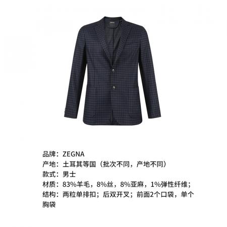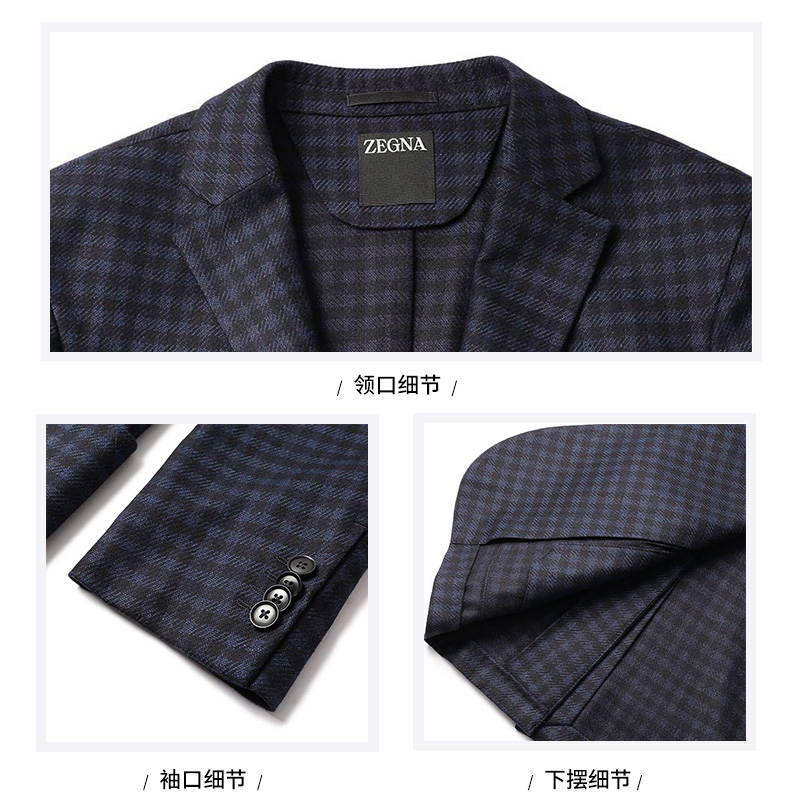 自营ZEGNA 杰尼亚 男士羊毛深蓝色黑色格纹西服西装上衣外套 650700A6 1DNMG0