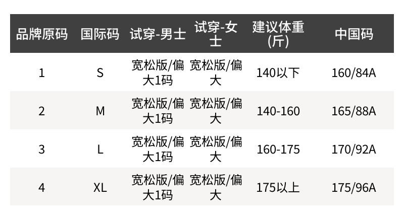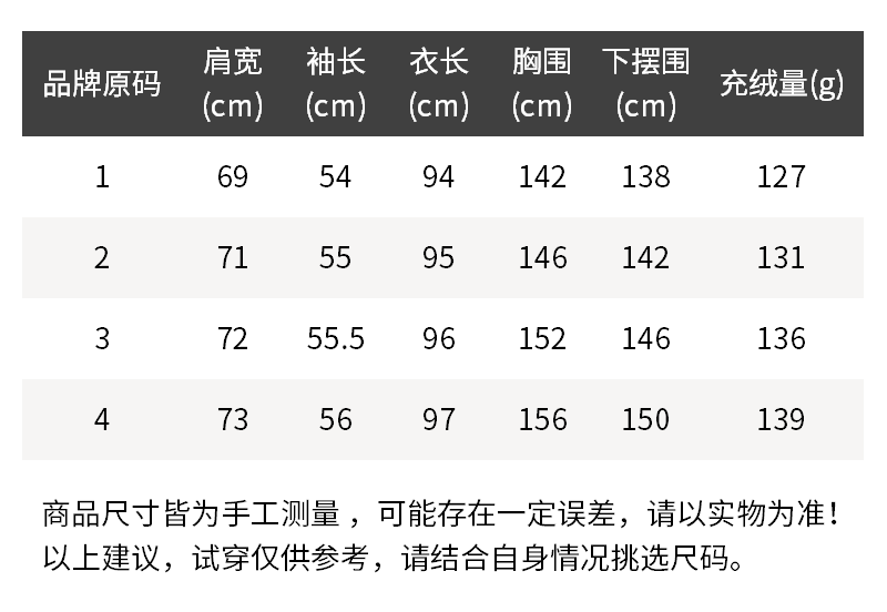 - 尺码说明