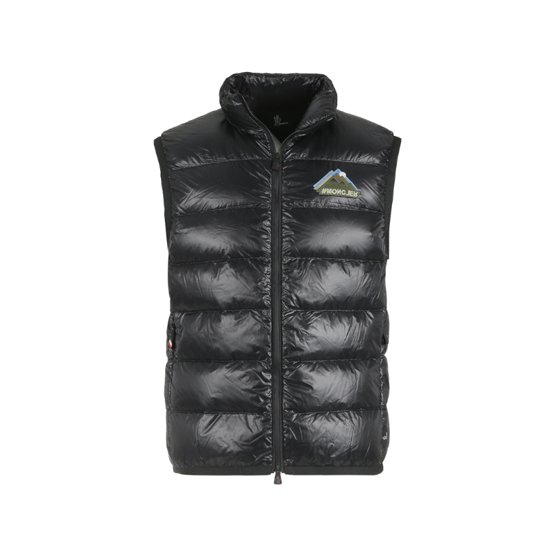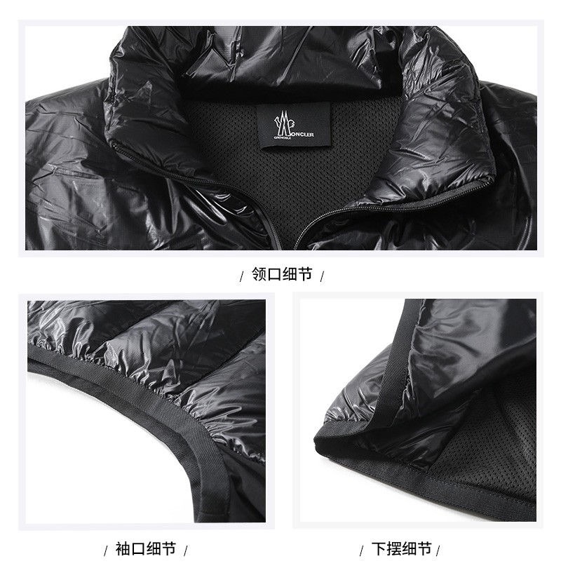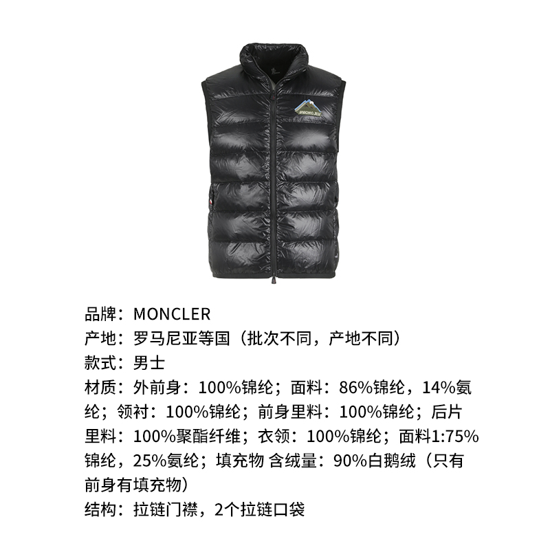 自营Moncler 盟可睐/蒙口 男士GRENOBLE系列黑色刺绣贴片高领半羽绒马甲鹅绒拉链外套上衣 I2 097 8G00003 829H7 999