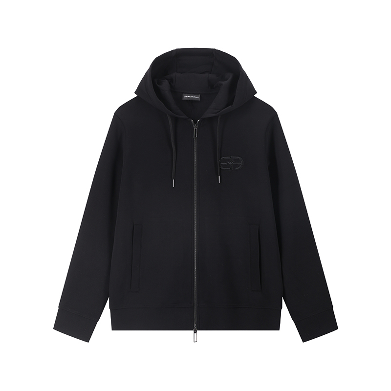 自营Emporio Armani 阿玛尼 新品 男士海军蓝色LOGO刺绣连帽拉链卫衣开衫运动衫外套 8N1ML6 1JHSZ 0920
