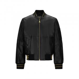自营Versace Jeans Couture 范思哲 【新品】男士羔羊皮黑色飞行夹克夹棉皮衣上衣外套 75GAVP06 CPPS3 899