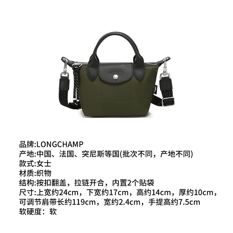 自营Longchamp 珑骧 新品 女包 女士LE PLIAGE ENERGY系列织物卡其绿色迷你短柄饺子包手提单肩斜挎包 1500 HSR 892