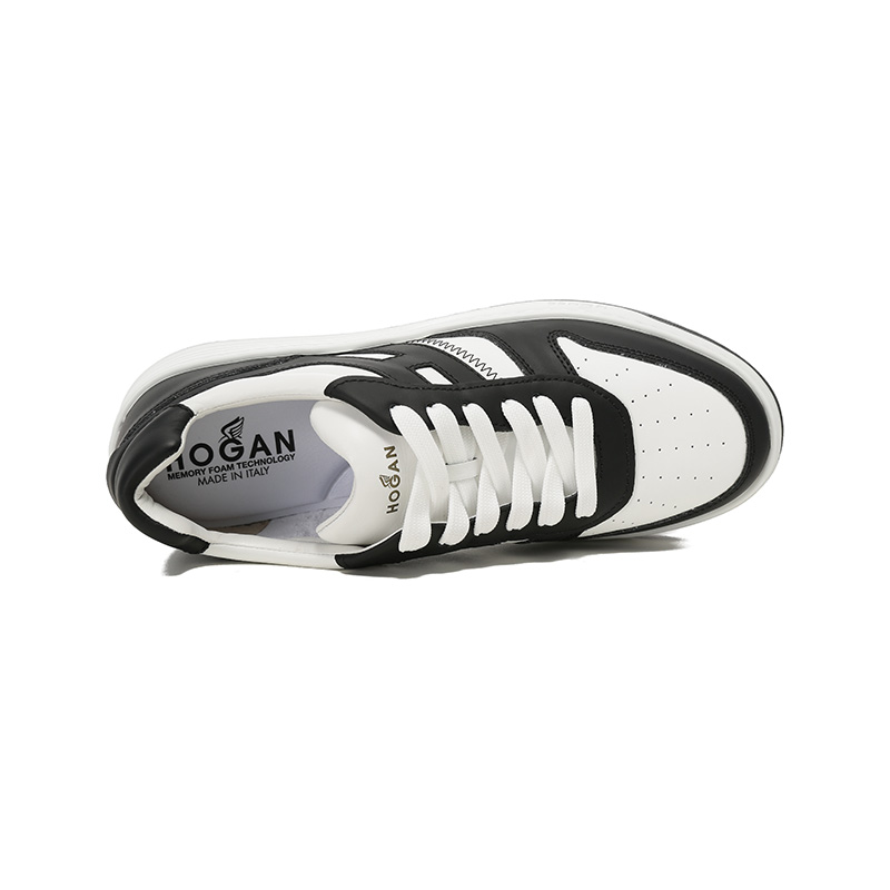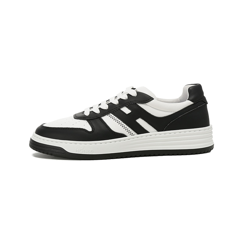 自营Hogan 【新品】男士H630系列皮革白色黑色H字母熊猫配色时尚复古系带厚底板鞋休闲运动鞋 HXM6300EU50R370001