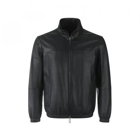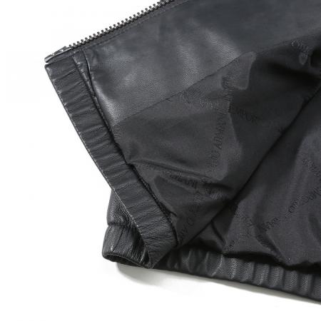 自营Emporio Armani 阿玛尼 新品 男士羊皮革黑色立领拉链皮衣夹克外套 01R55P 01P54 999