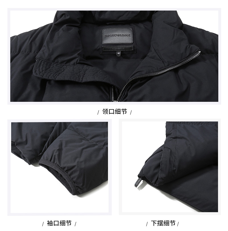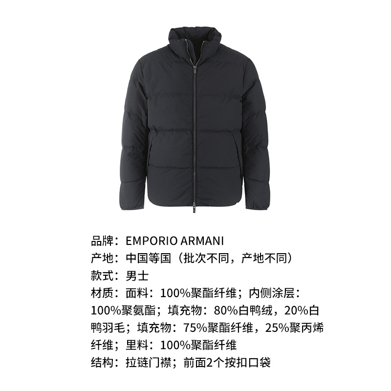 自营Emporio Armani 阿玛尼 【新品】男士黑色立领鸭绒羽绒服夹克上衣外套 8N1BQ3 1NLRZ 0999