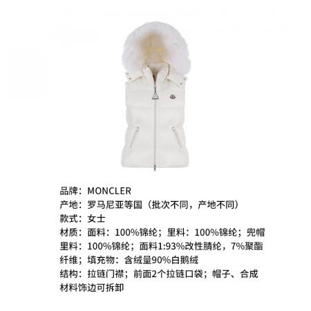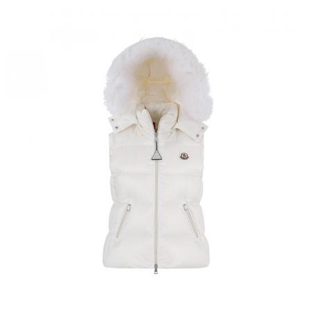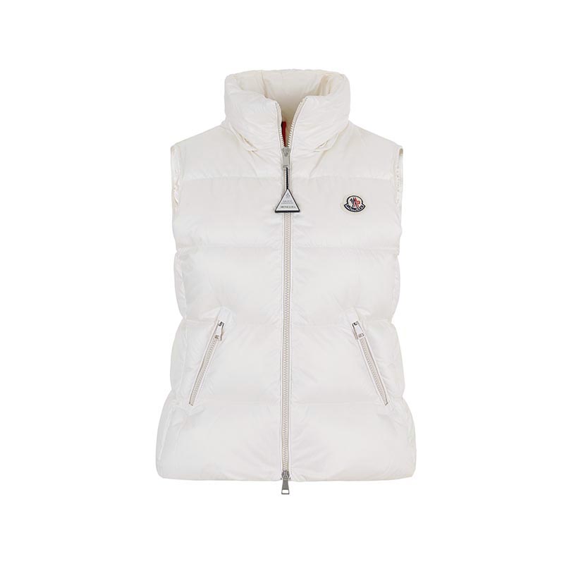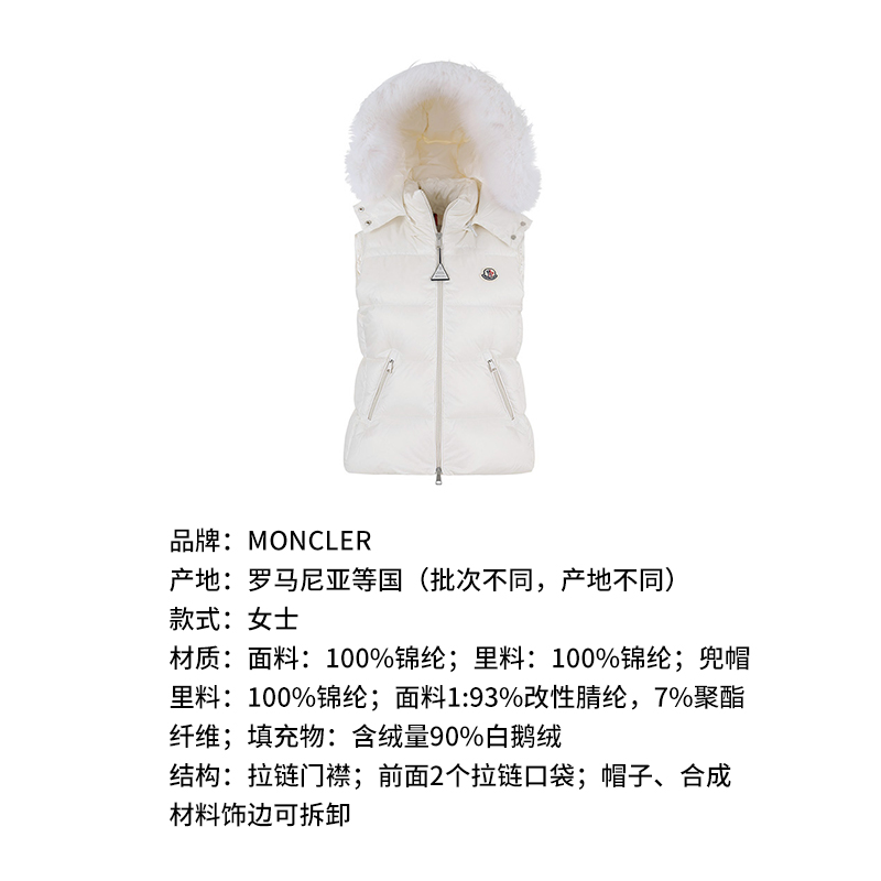 自营Moncler 盟可睐/蒙口 【新品】女士白色小标识Gallinule修身版连帽鹅绒拉链羽绒服马甲 I2 093 1A00163 595ZZ 034