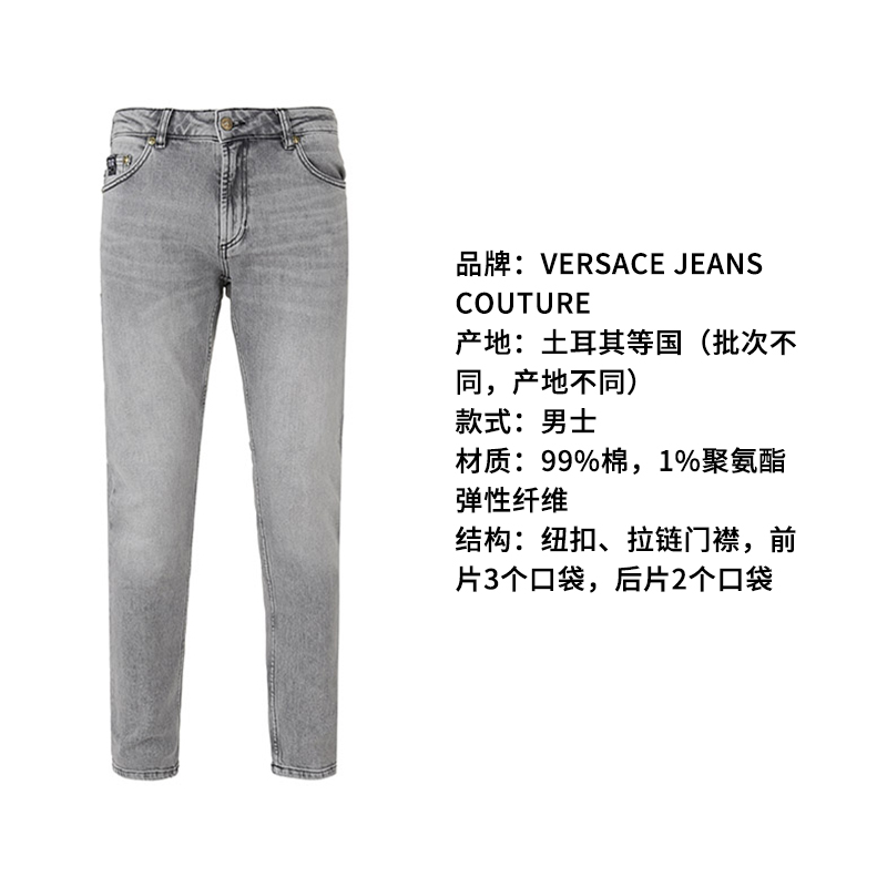 自营Versace Jeans Couture 范思哲 【新品】男士棉质浅灰色LOGO刺绣复古修身版牛仔裤长裤 75GAB5D2 CDW63 915