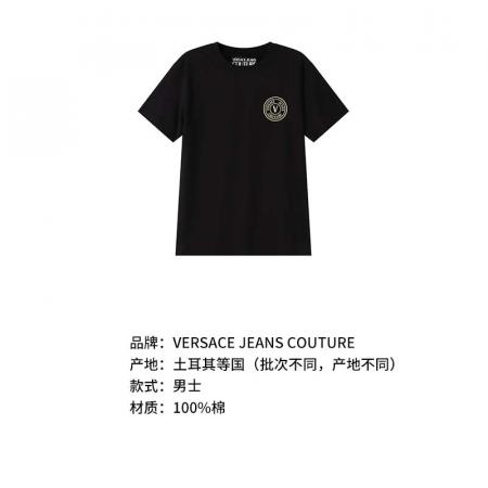 自营Versace Jeans Couture 范思哲 男士棉质黑色V字徽章胶印V-EMBLEM圆领短袖T恤 76GAHT02 CJ00T G89