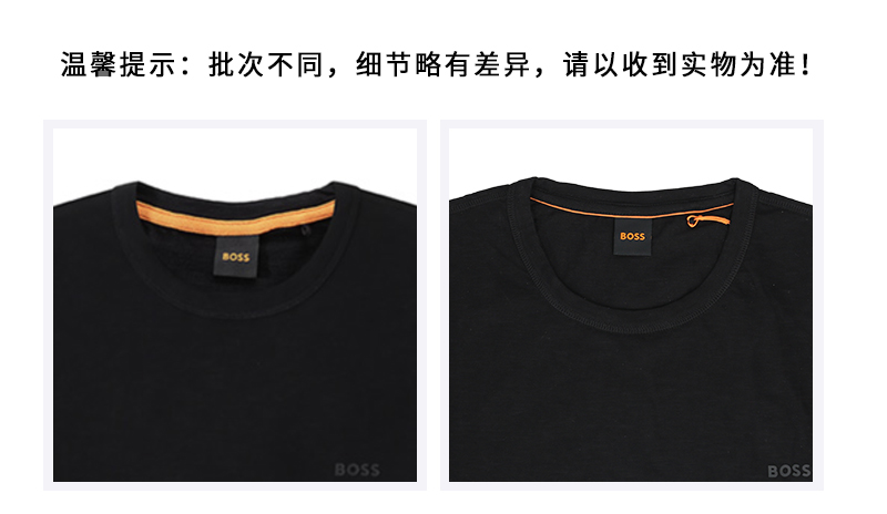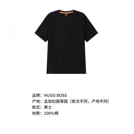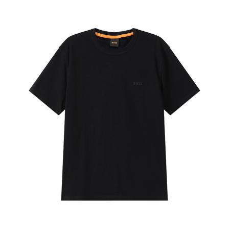 自营Hugo Boss 雨果博斯 新品 男士orange系列棉质黑色小徽标胶印竹节棉圆领短袖T恤 50508243 001