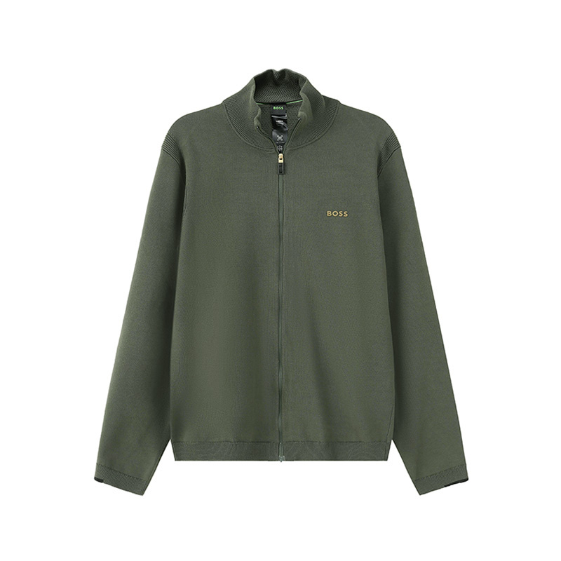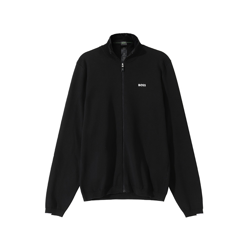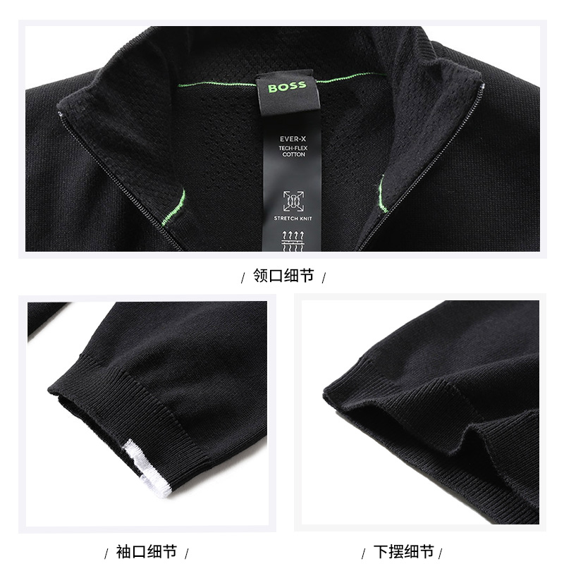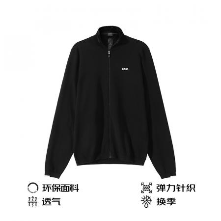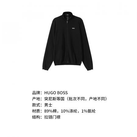 自营Hugo Boss 雨果博斯 男士green系列棉质黑色徽标胶印立领针织开衫外套上衣 50498540 001