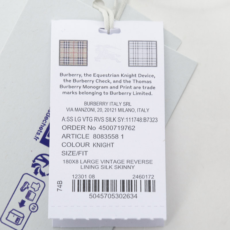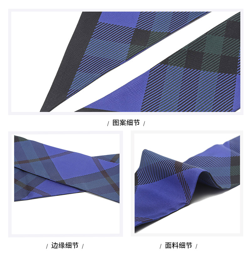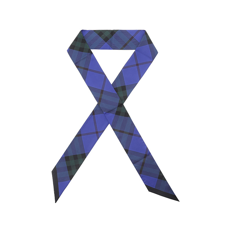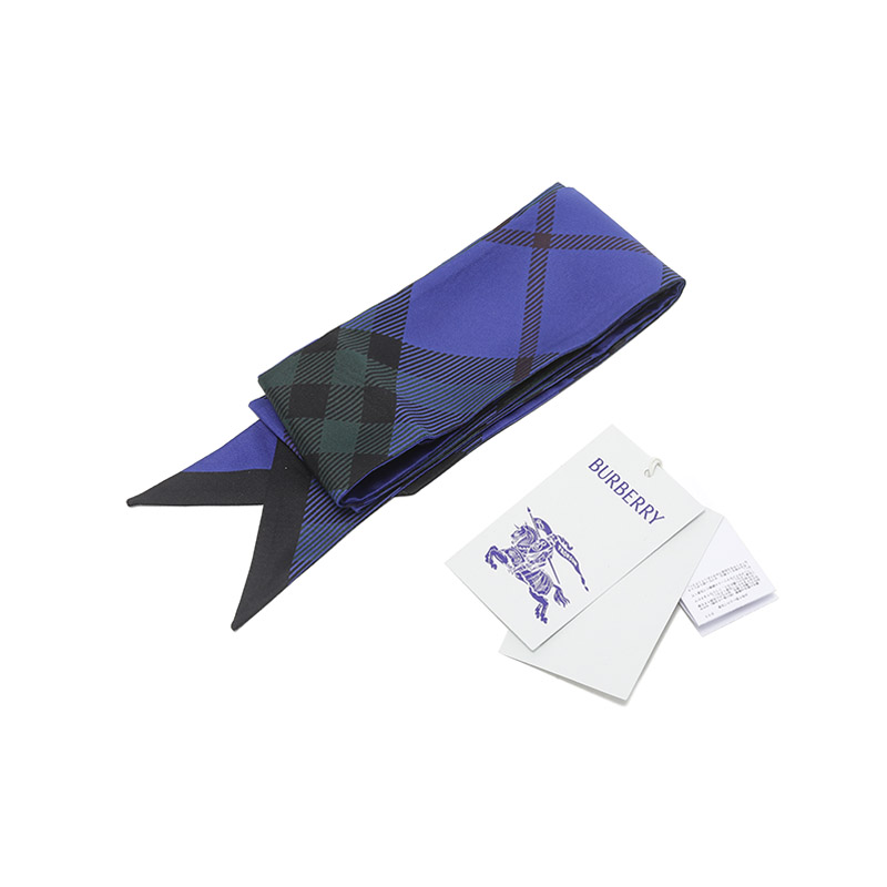 自营Burberry 博柏利 男士/女士中性款骑士蓝格纹印花丝质窄版丝巾围巾束发带装饰带小领巾180*8cm 80835581