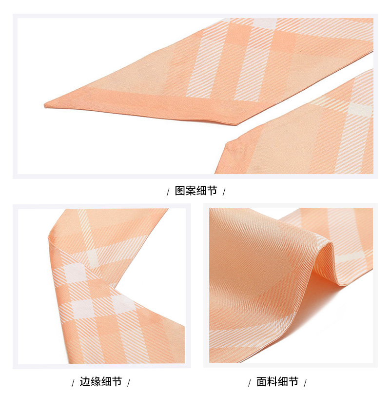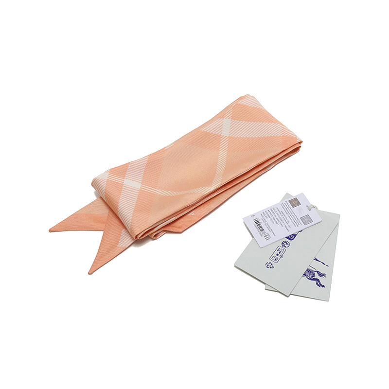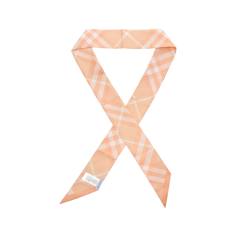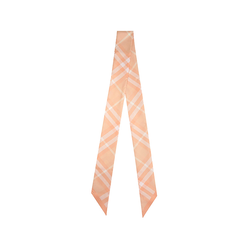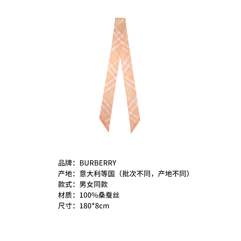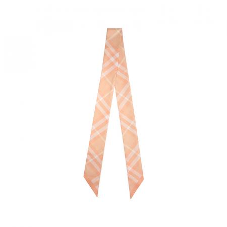 自营Burberry 博柏利 男士/女士中性款蜜桃色格纹印花丝质窄版丝巾围巾束发带装饰带小领巾180*8cm 80832991