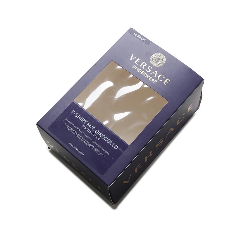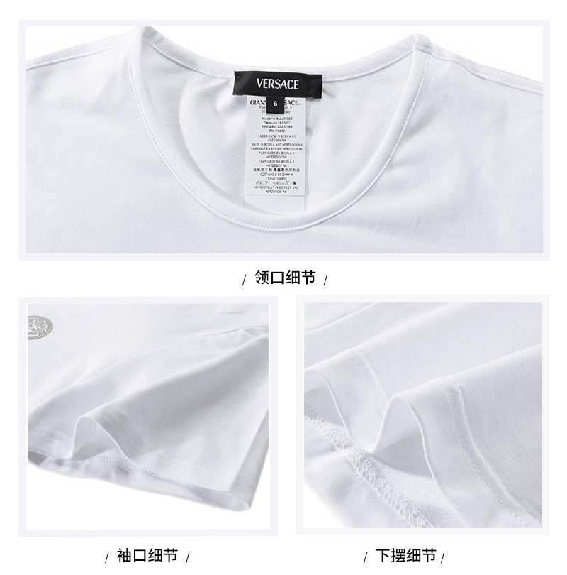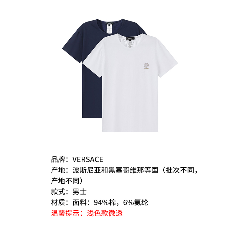 自营Versace 范思哲 男士棉质白色/深蓝色美杜莎印花圆领短袖修身汗衫贴身打底衫内衣T恤两件套装 AU10193 1A10011 A40I