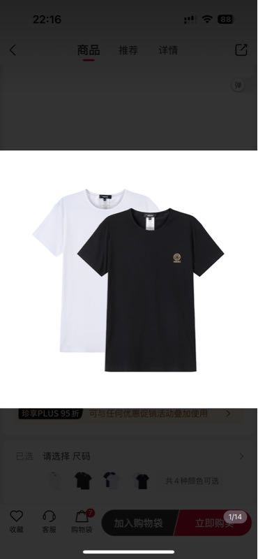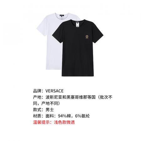 自营Versace 范思哲 【新品】男士棉质白色/黑色美杜莎印花圆领短袖修身汗衫贴身打底衫内衣T恤两件套装 AU10193 1A10011 A225E