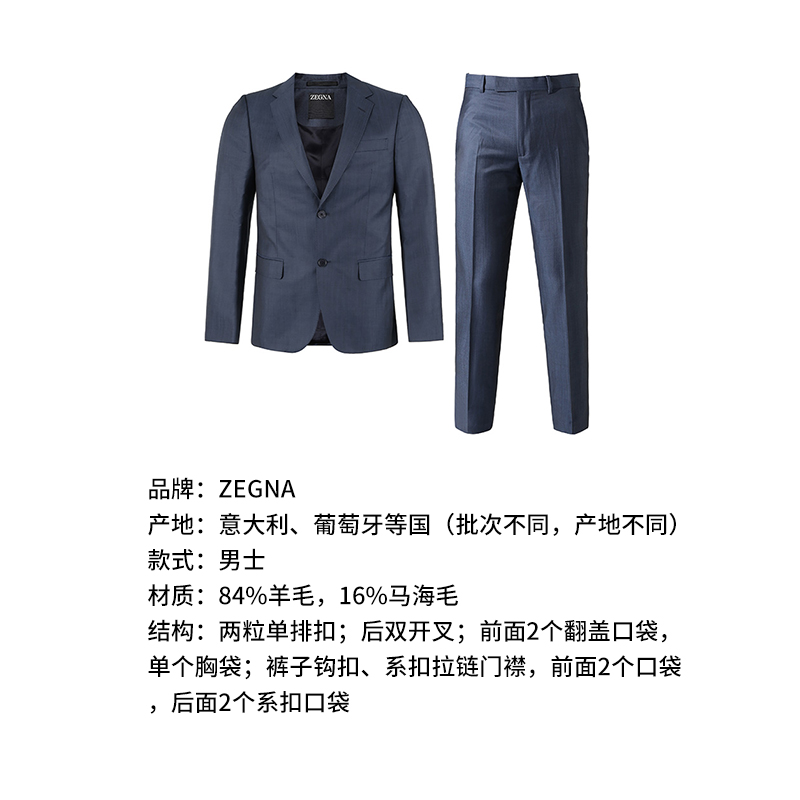 自营ZEGNA 杰尼亚 【新品】男士深蓝色两粒单排扣商务西装西裤西服套装 622782A6 281CGA
