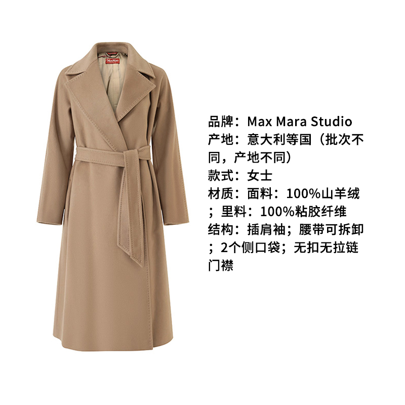 自营Max Mara Studio 麦丝玛拉 【新品】女士山羊绒驼色长款大衣外套 FELTRO 014 60160939