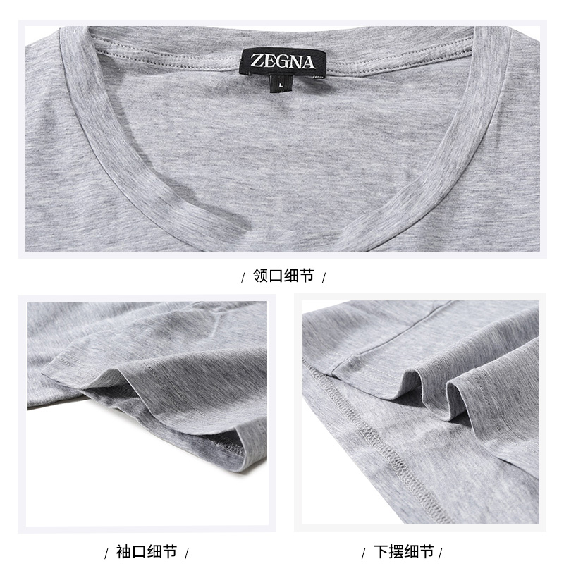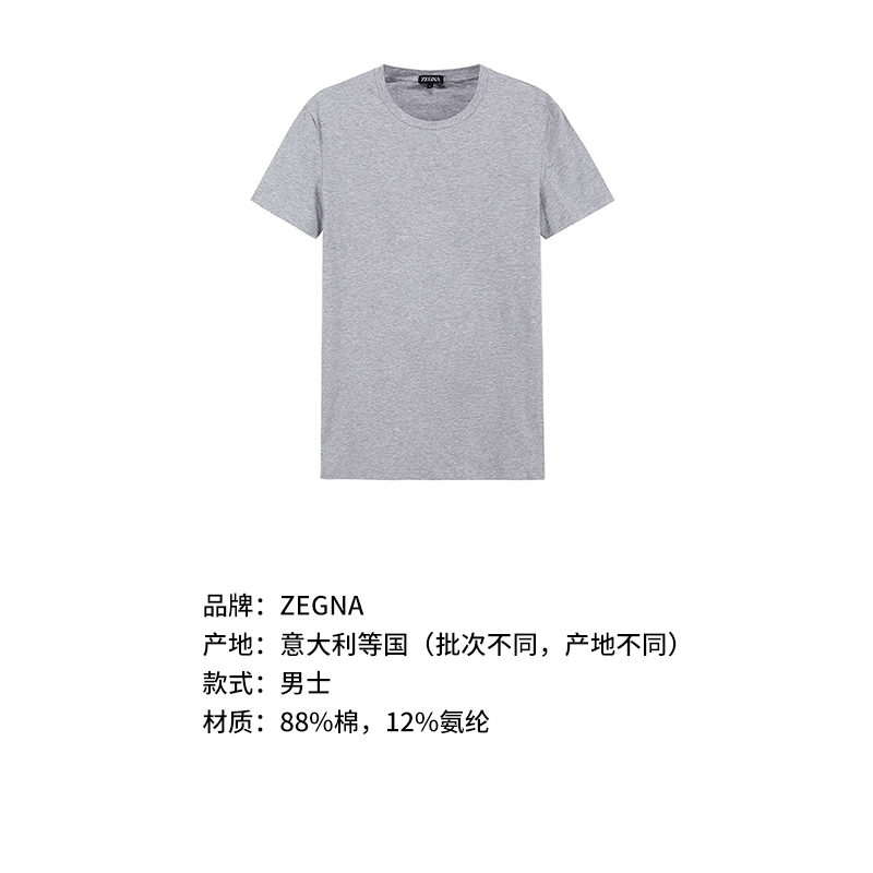 自营ZEGNA 杰尼亚【新品】 男士棉质灰色修身弹力圆领短袖贴身打底衫内衣T恤 N2M200090 020