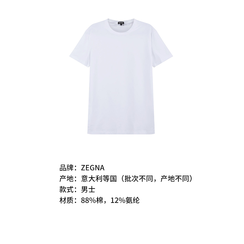 自营ZEGNA 杰尼亚 【新品】 男士棉质白色修身弹力圆领短袖贴身打底衫内衣T恤 N2M200090 100
