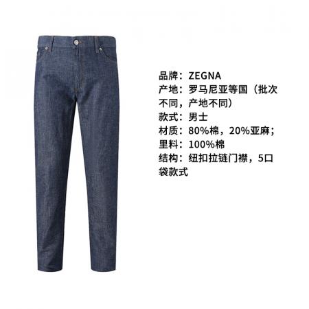 自营ZEGNA 杰尼亚 【新品】男士午夜蓝棉质修身版Roccia牛仔裤长裤 E7I91A5 CITY 001