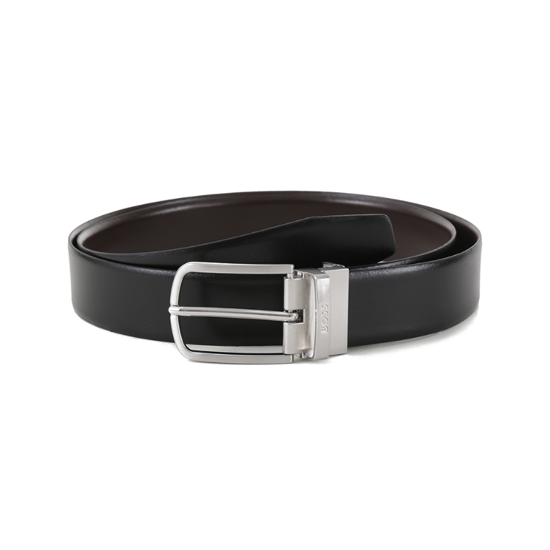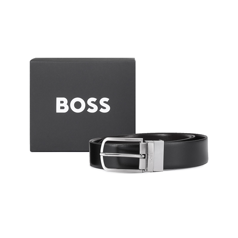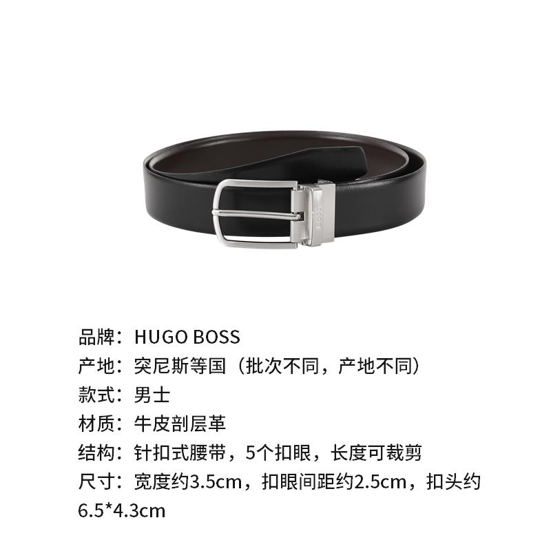 自营Hugo Boss 雨果博斯 【新品】男士black系列黑色/棕色可裁剪双面旋转皮带腰带3.5cm 50491871 002