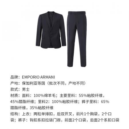 自营Emporio Armani 阿玛尼 【新品】男士深蓝色单排扣商务西装西服西裤长裤套装 H41VMG 01504 922