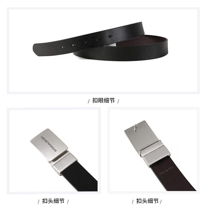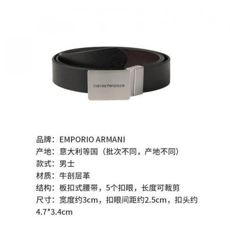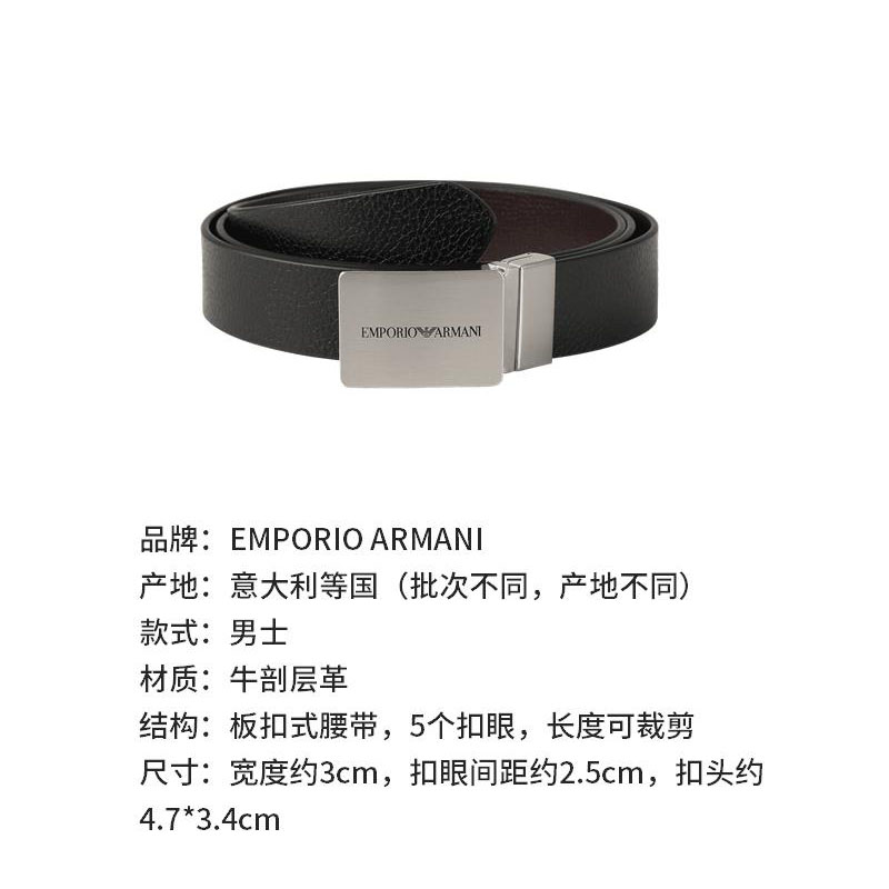 自营Emporio Armani 阿玛尼 新品 男士牛剖层革黑色/褐色可裁剪双面旋转皮带腰带3cm Y4S563 Y737E 88044