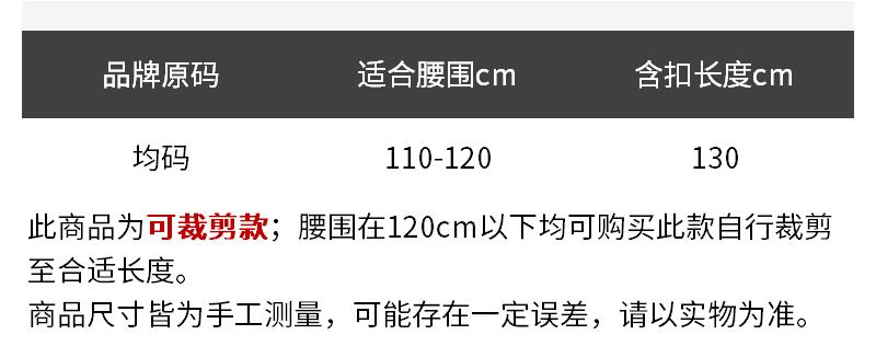 - 结构:板扣式腰带,5个扣眼,长度可裁剪