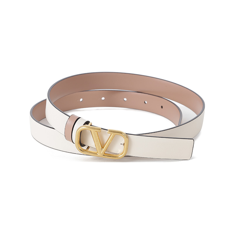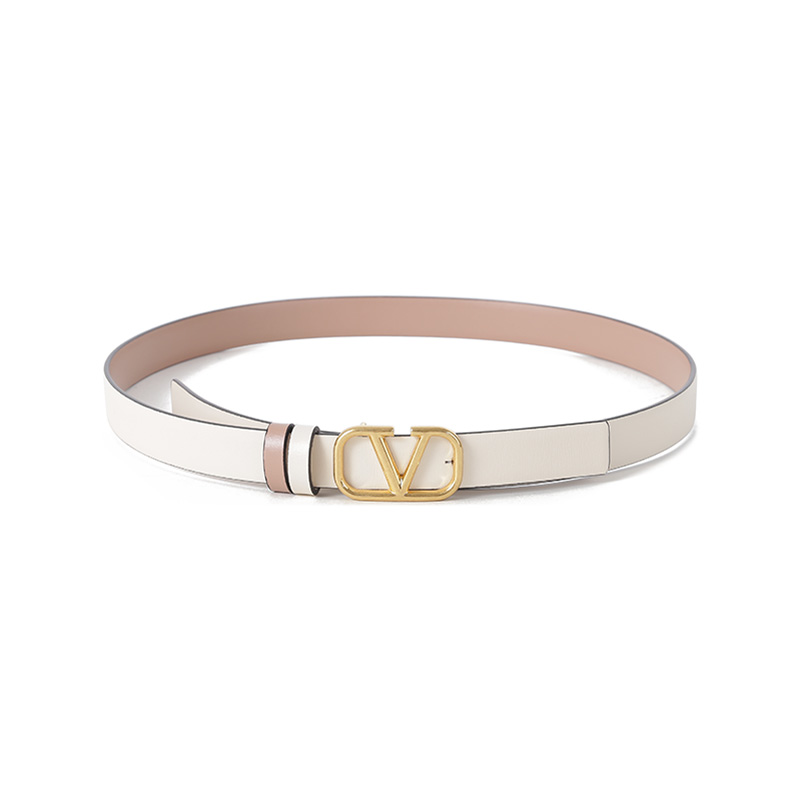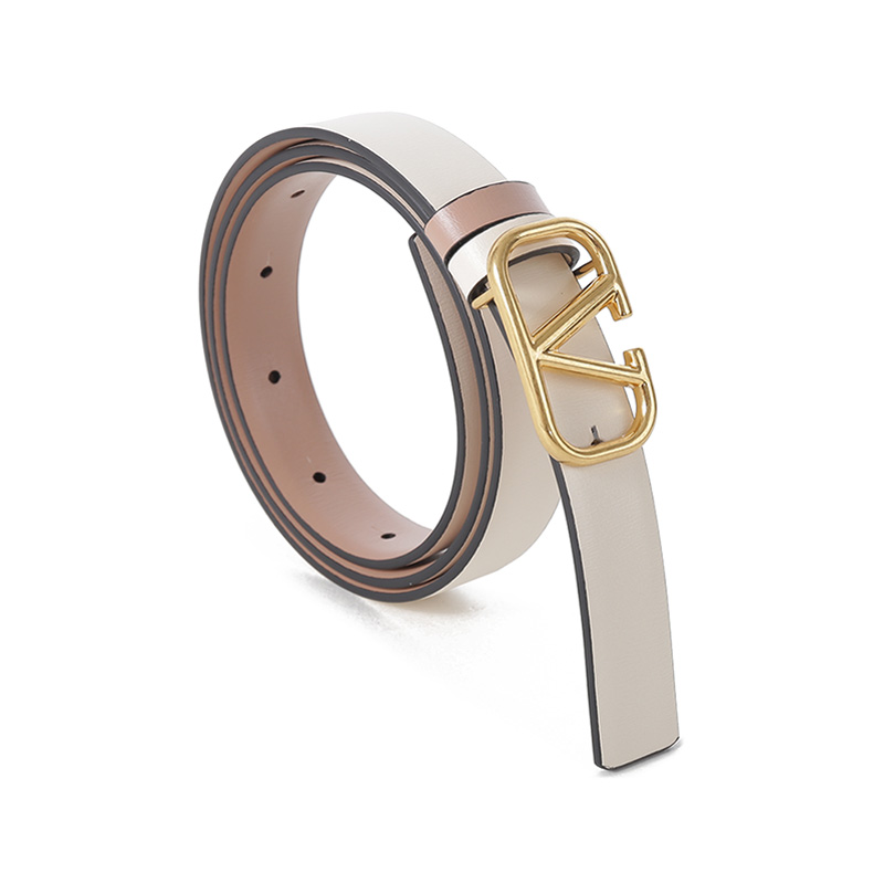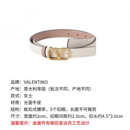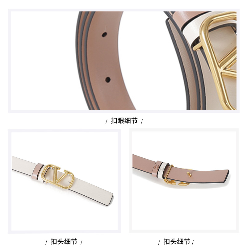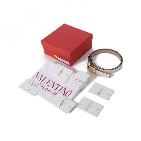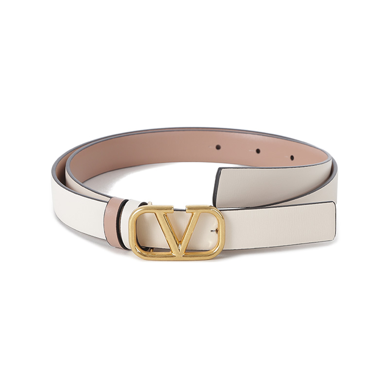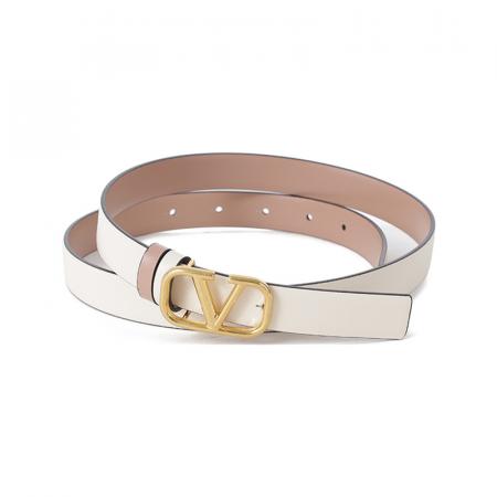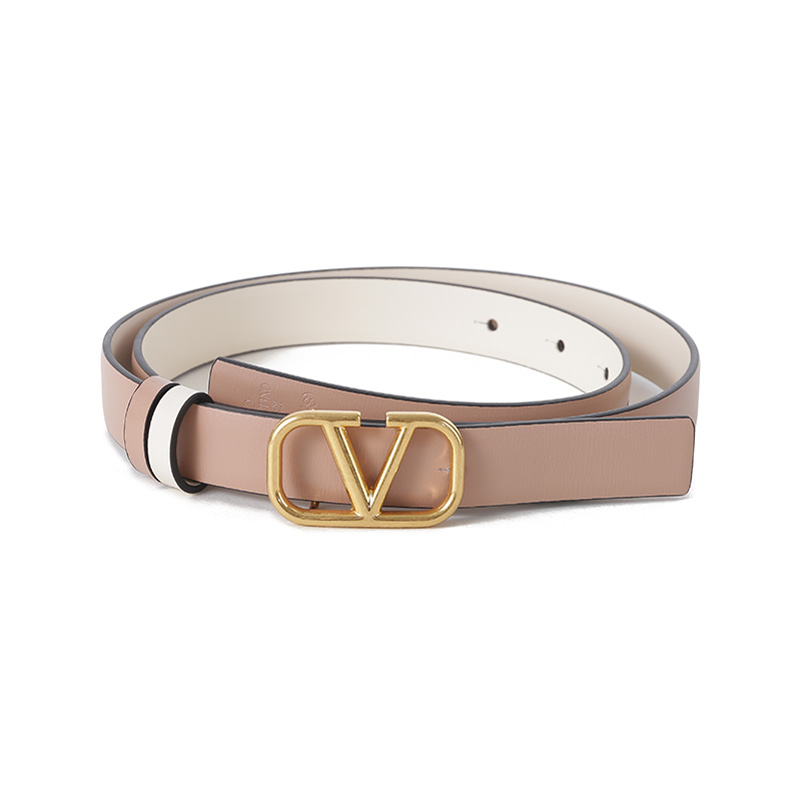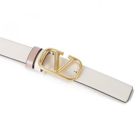自营Valentino 华伦天奴 【新品】女士光面牛皮浅象牙白色/肉桂粉色VLOGO SIGNATURE复古不可裁剪双面窄版皮带腰带2cm 4W2T0S12 ZFR C34