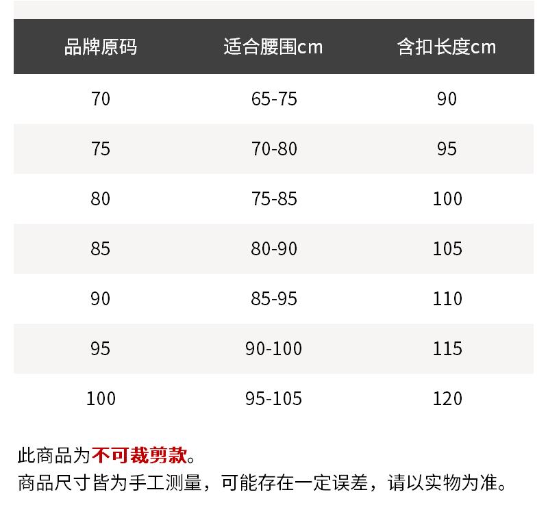 - 结构:板扣式腰带,5个扣眼,长度不可裁剪